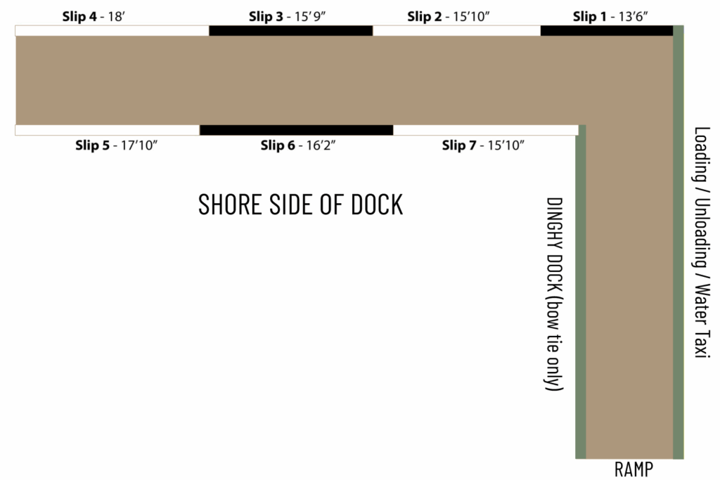 We have 7 boat slips and 5 mooring buoys for our guests.