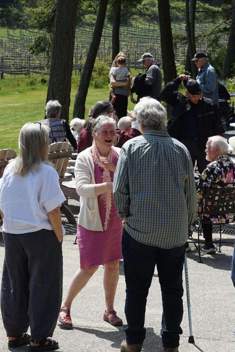 In 2019, Geoff Hayward, one of the brothers, chose to spend his final months here after an ALS diagnosis. His daily visits to the vines and the sea beyond deepened our family’s bond with the land. Today, Lake Geoffrey, at the foot of Falcon Ridge Vineyard, stands as a tribute to him, alongside the resting places of both Geoff and his father, Gord, in Saturna’s cemetery.